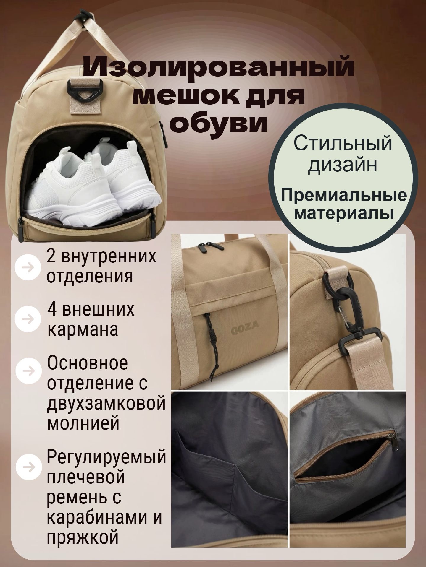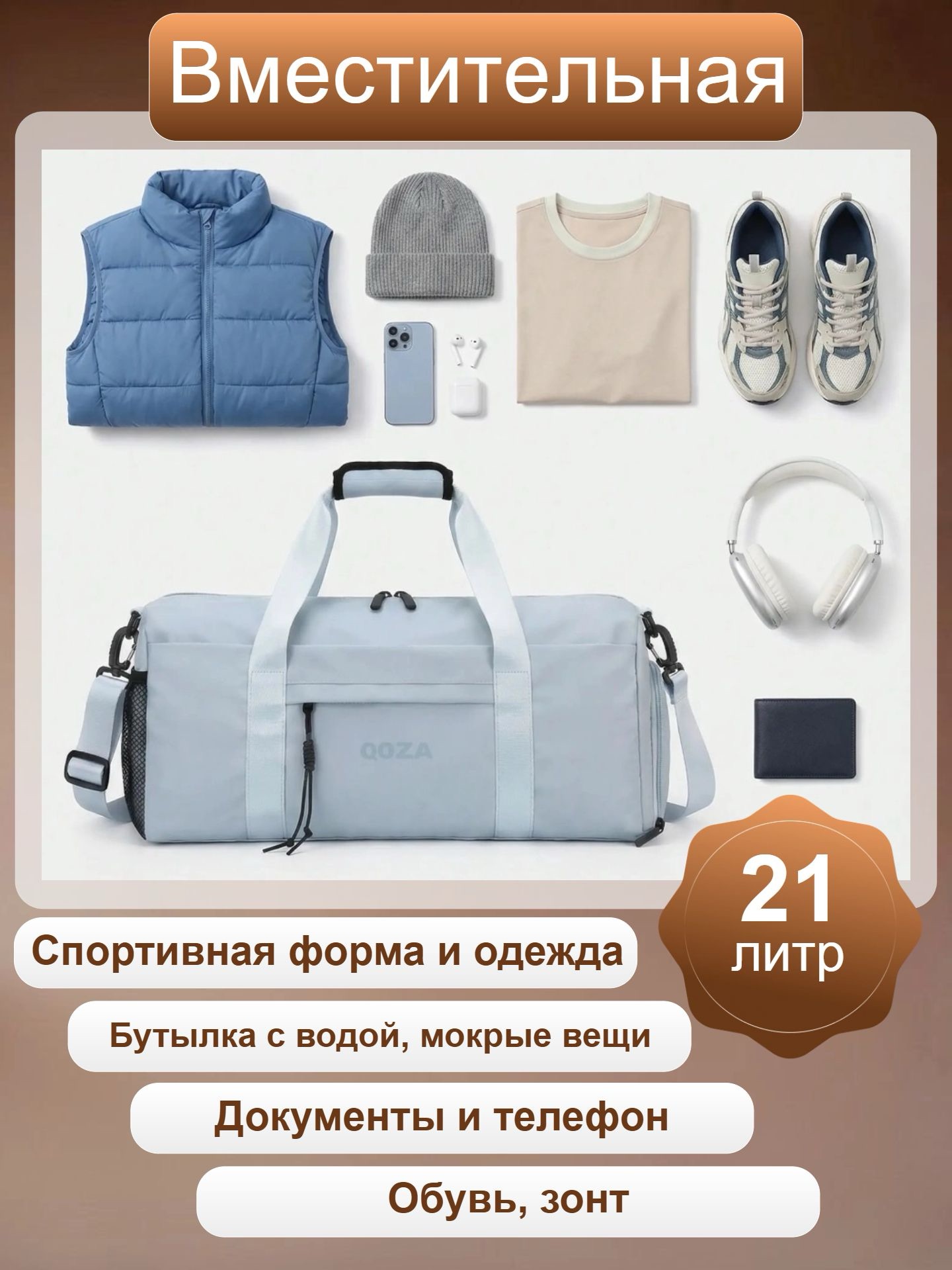 Сумка спортивная QOZA Limited Edition — 21 л, премиальный бежевый цвет для статусных образов