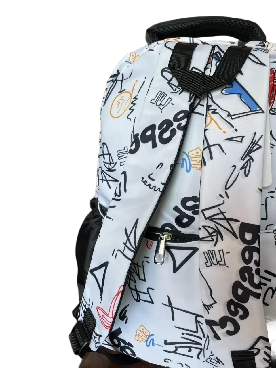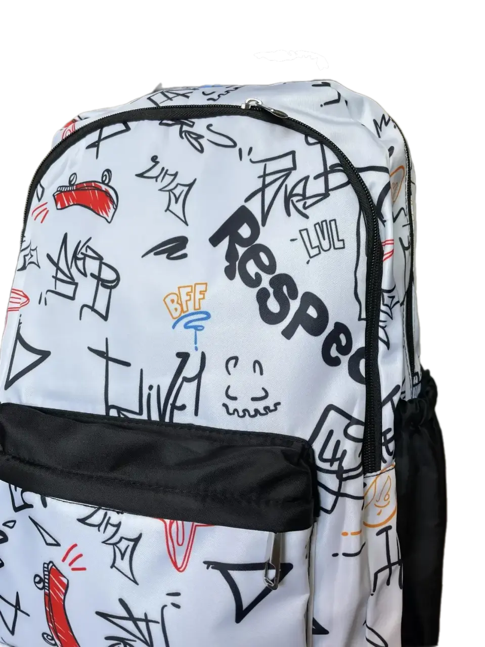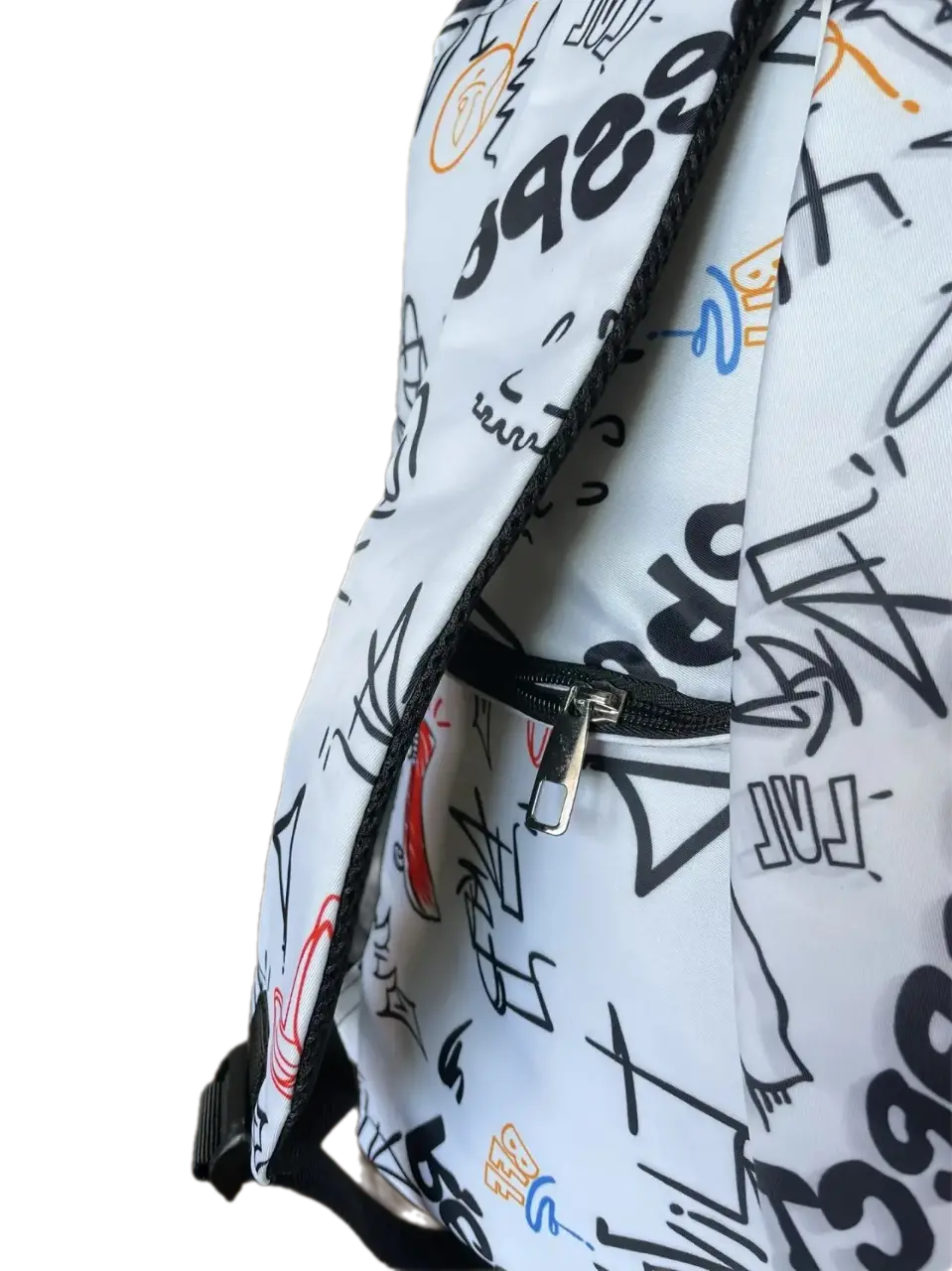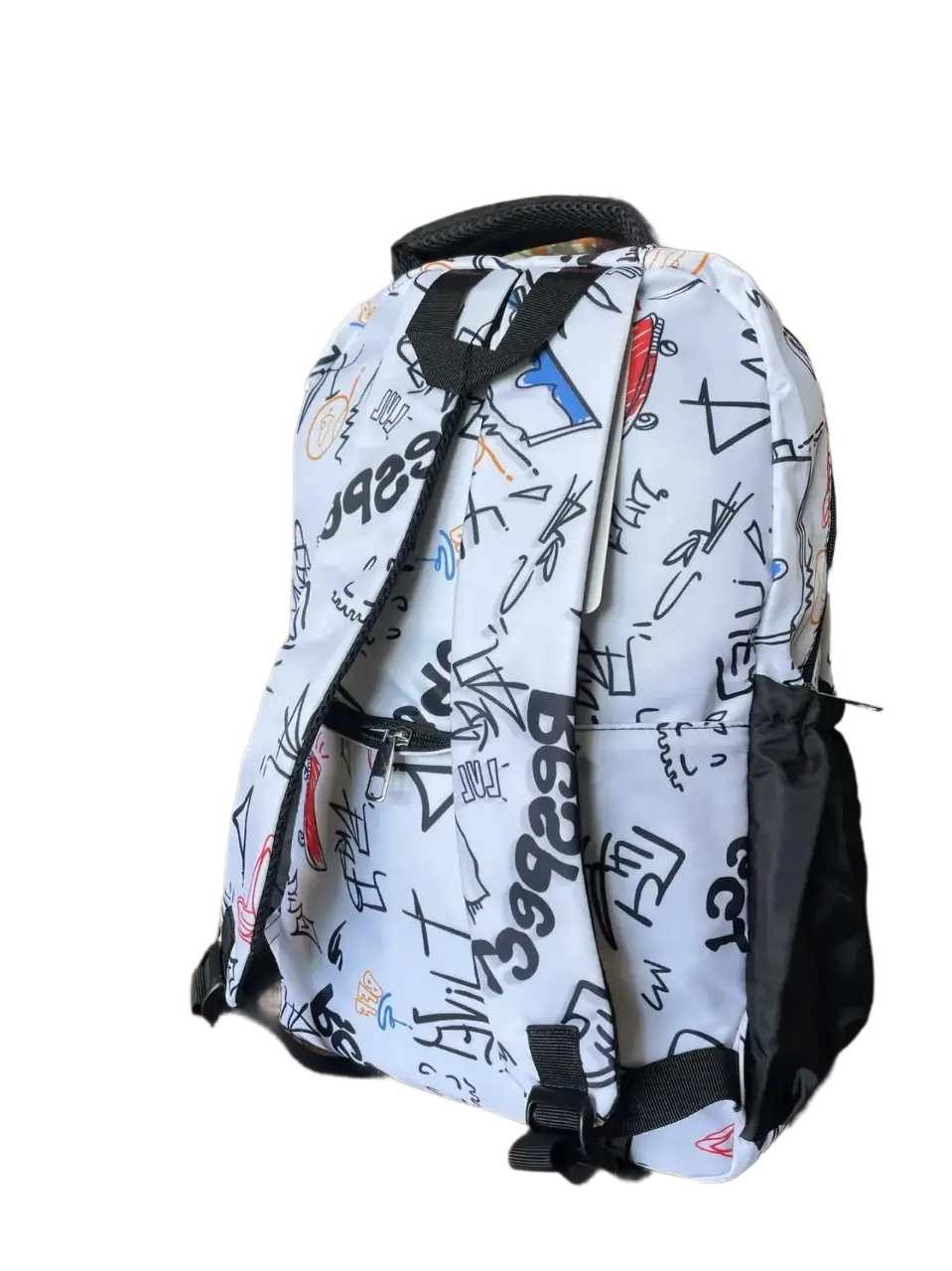 Уникальный дизайн – принт в стиле городских вывесок выделяет рюкзак