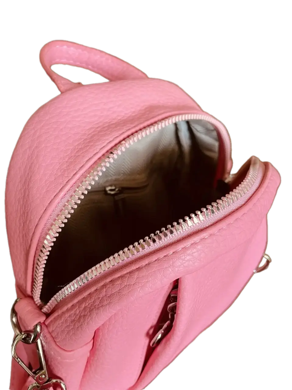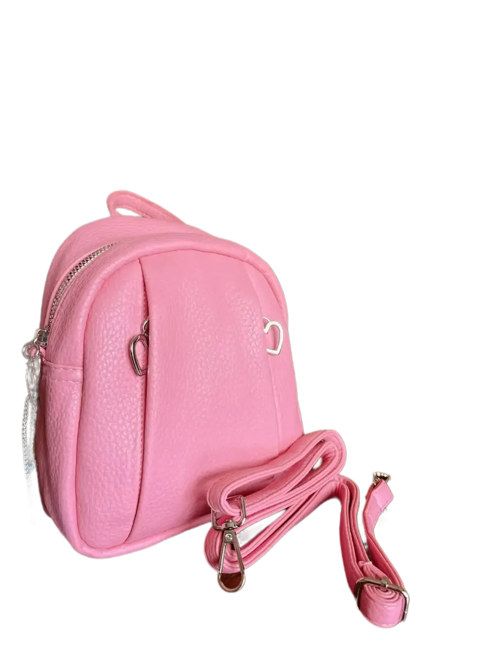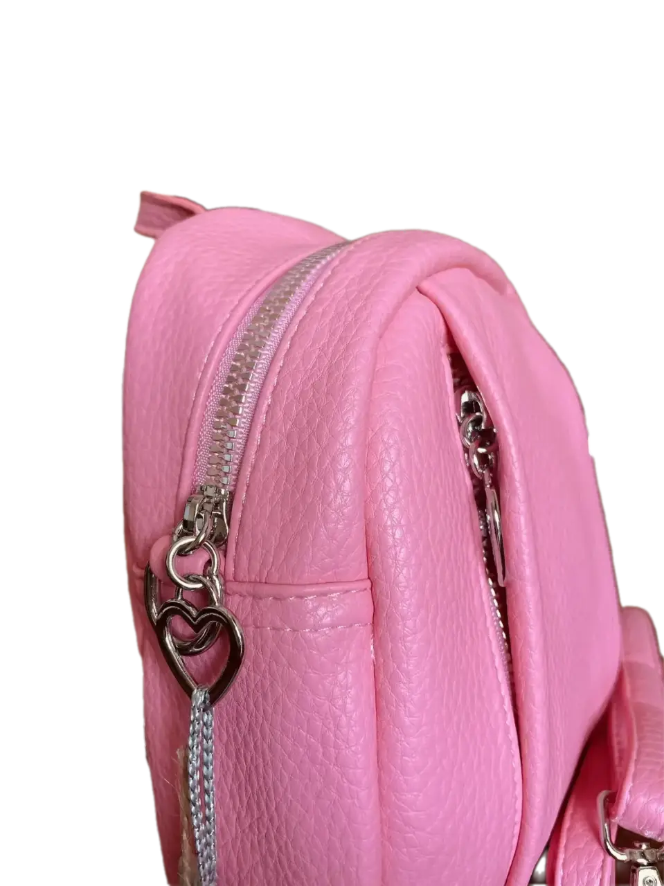 "Эта сумочка – просто мечта! Розовый цвет, сердечки на молниях – такая милая и стильная. Можно носить как рюкзачок, можно как сумочку через плечо. Помещается телефон, ключи, карты – идеально для прогулок!"